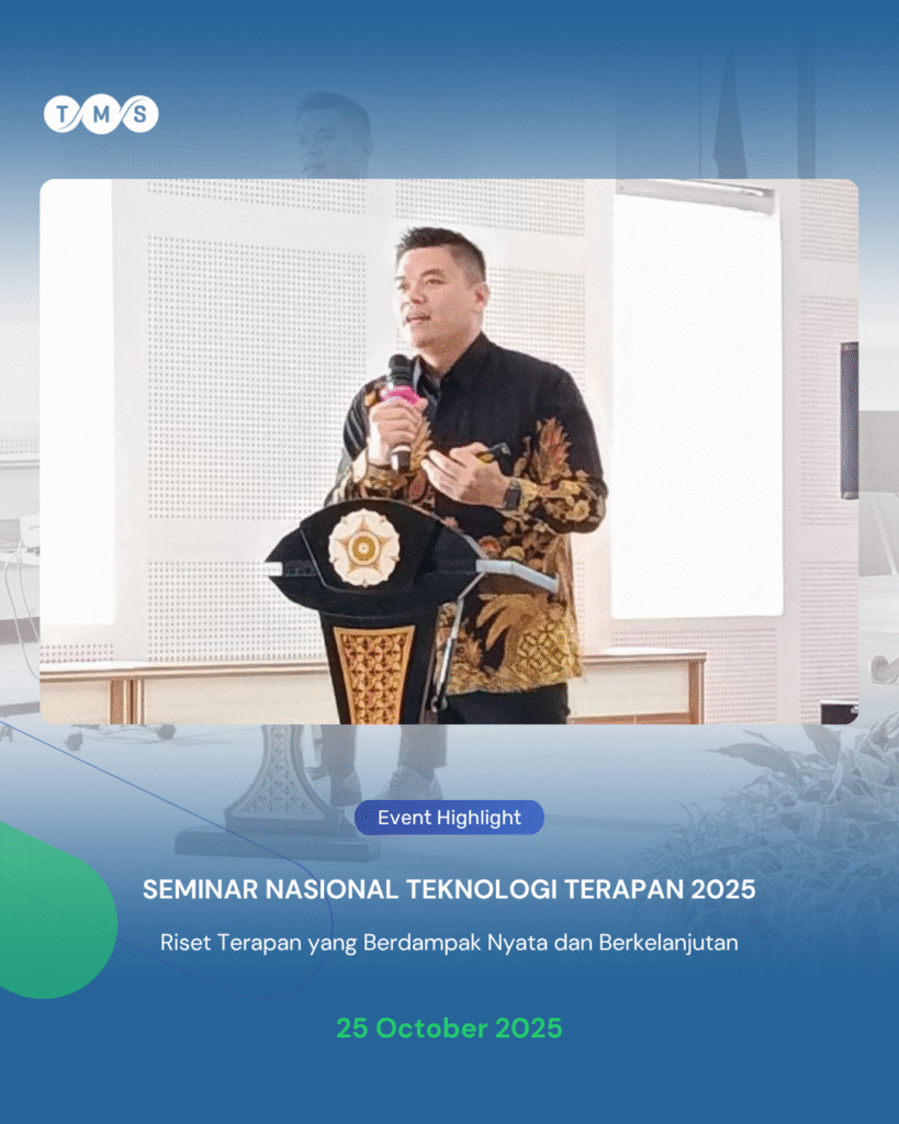 We’re proud to share that Dwi Handri Kurniawan, CEO of TMS Consulting, took part in the Seminar Nasional Teknologi Terapan 2025 with the theme “Riset Terapan yang Berdampak Nyata dan Berkelanjutan.” 🌱 Through his session, Pak Handri emphasized the importance of applied research that creates real, measurable impact and supports Indonesia’s long-term technological advancement.