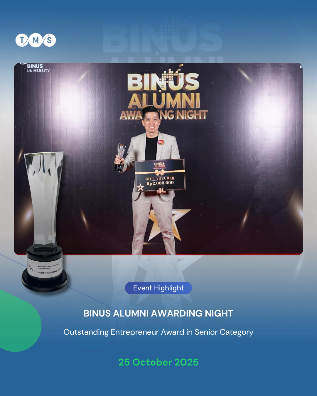 Congratulations to Albert Juanda, Co-CEO of TMS Consulting, for receiving the Outstanding Entrepreneur Award in the Senior Category at the BINUS Alumni Awarding Night 2025! 🌟